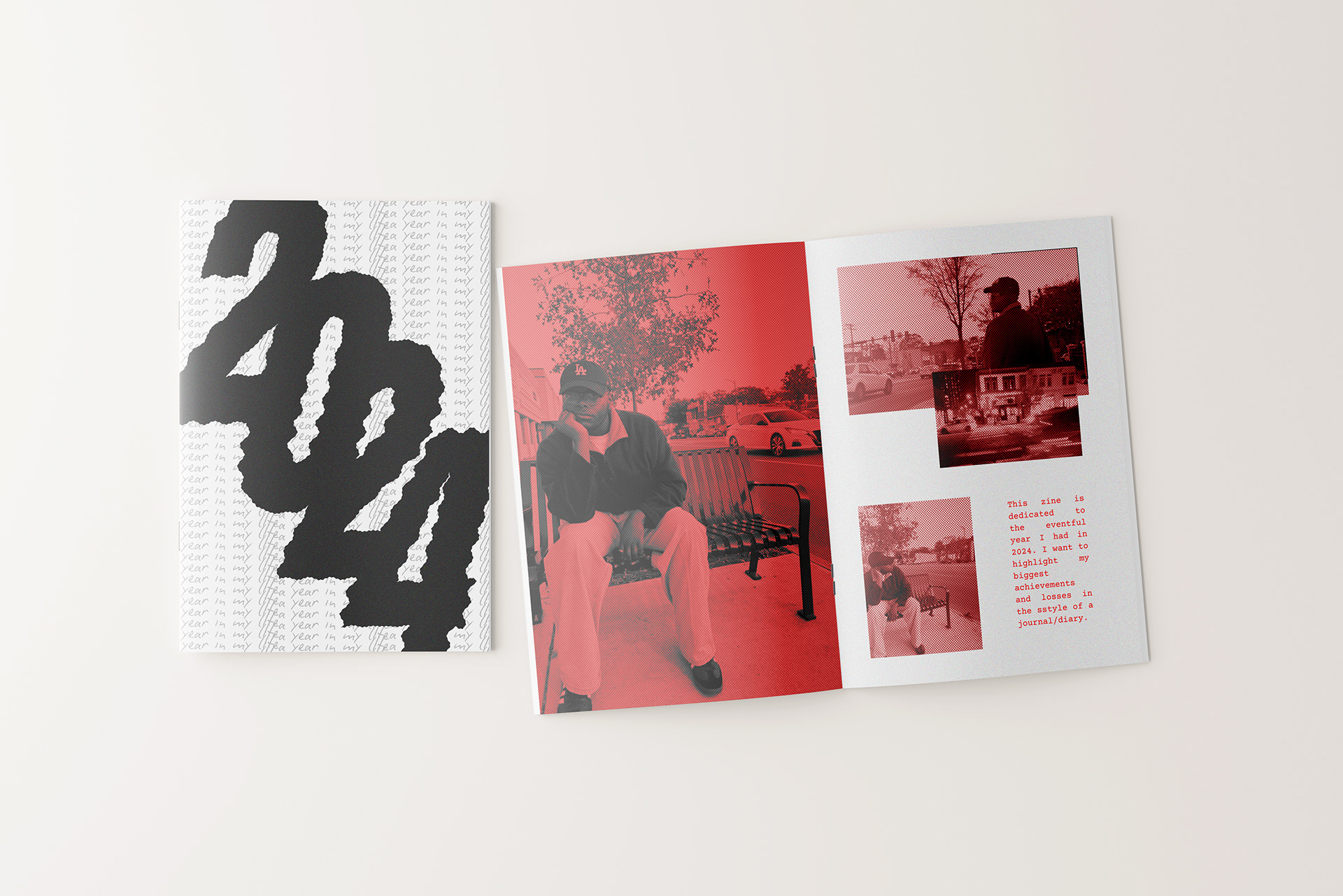 A 15 page zine about my 2024... it explores the end of my high school journey, the start of my college journey, and self-exploration.